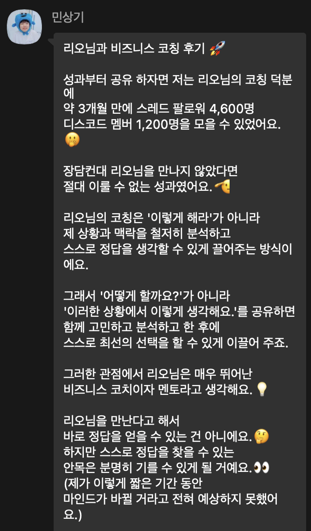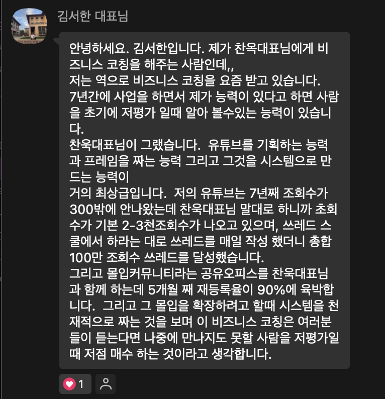 "이 비즈니스 코칭은 저점매수하는 것이라고 생각합니다"